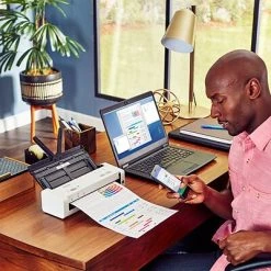 The Brother ADS-1250w wireless desktop scanner is ideally suited for small office/home office professionals with its compact design and portability. The ADS-1250w offers a single-pass, duplex, color and black/white scan speeds of up to 25ppm, a 20-page capacity auto document feeder, and wireless scanning to PC and mobile devices.
