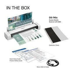 The Brother DS-740D duplex compact mobile document scanner is ideally suited for on-the-go/small office/home office professionals with its compact, mobile design and simple workflow applications. The DS-740D offers single-pass duplex color scanning at high speeds.