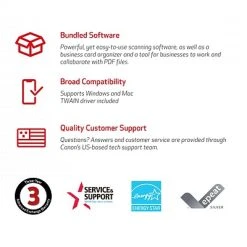 Bundled software: Powerful, yet easy to use scanning software, as well as a business card organizer and a tool for businesses to create, view, edit, convert, and collaborate with PDF files