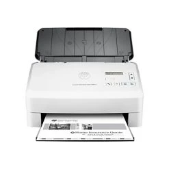 Handle your office’s document scanning needs with this HP ScanJet color sheet-feed scanner. The 80-page automatic document feeder allows for hassle-free loading, and speeds of up to 75 pages per minute ensure fast, efficient scanning across all tasks. HP EveryPage enables mixed media and page size scanning, so you can create digital files of invoices, checks, and legal contracts in a single pass. This HP ScanJet color sheet-feed scanner boasts an LCD control panel and one-button scanning capabilities for easy operation.